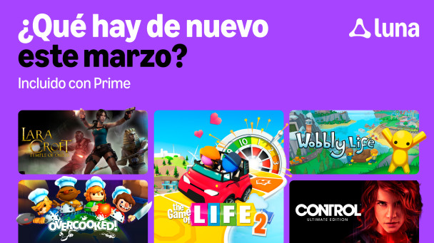 Luna ofrece varios títulos adicionales para los miembros Prime durante todo el mes de marzo, ¡y los primeros juegos ya están disponibles desde hoy! Estos títulos se suman a biblioteca de más de 50 juegos disponibles para los miembros Prime. Entre otros títulos, la oferta de este mes incluye una gran variedad de juegos multijugador. Por si el juego cooperativo para cuatro jugadores Lara Croft and the Temple of Osiris no fuera suficiente, Luna también da la bienvenida a la diversión familiar con The Game of Life 2, y más éxitos multijugador como Wobbly Life, Overcooked! y House of Golf 2. ¡Visita regularmente luna.amazon.com para ver la biblioteca completa disponible!